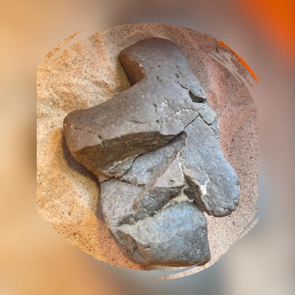 Dieses faszinierende Objekt stammt aus der geschichtsträchtigen Umgebung der Veledahöhle im Sauerland. Es ist kein Stein, sondern ein massives Stück gebrannter Ton. Also Stein auf jeden Fall. Eine Mischung halt.