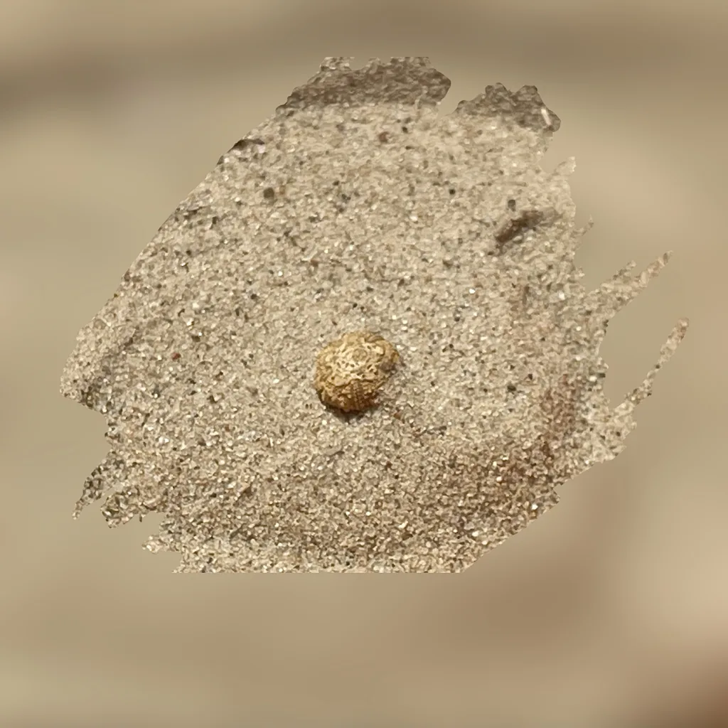 Wir schreiben die Epoche des Cenomaniums. Unser kleiner Seeigel lebte in einem lichtdurchfluteten Flachmeer. Damals war er kein versteinerter Zeuge, sondern ein farbenfrohes Wunderwerk der Natur. Trotz seiner geringen Größe war er ein Meister der Anpassung. Mit seinen feinen Saugfüßchen hielt er sich behutsam an Algen oder Felsen fest, während über ihm vielleicht gerade ein Flugsaurier seine Kreise zog. In seiner Welt war er ein perfektes Juwel des Meeresbodens – geschmückt mit feinen Stacheln, die ihn wie eine kleine, wehrhafte Krone schützten.